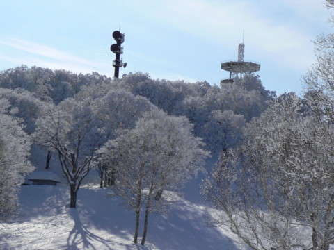 そこは、標高1600M、里とは別世界、樹氷、樹氷・・・見渡す限り白銀の世界