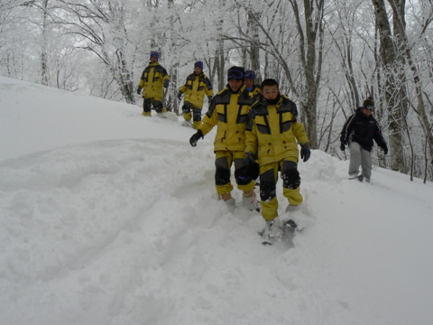 今月中旬より入る稲城市の中学生体験学習の下見で仲間とスノーシュー体験をして来ました。