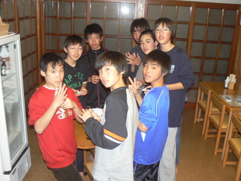 2時間ほど前に野沢に着いたばかりというのにこのはしゃぎ様、元気はどこから来るのか? と、思うほど元気、元気